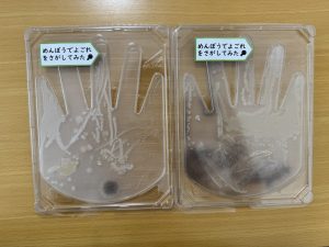8月下旬に、5歳児クラスで手洗いにまつわる実験をしました!