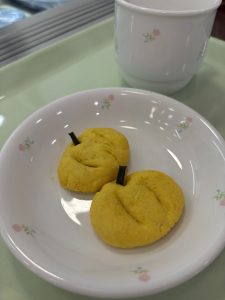 午後のおやつには、かぼちゃ🎃の形をしたクッキーに