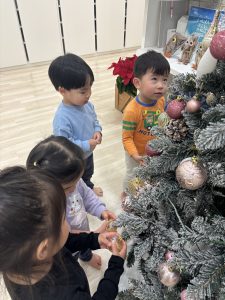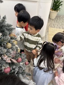 他のクラスのお子様も、ツリー🎄を見にきていました。