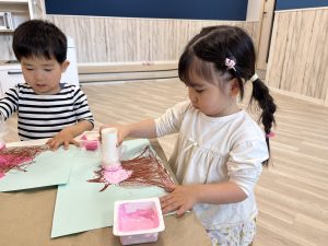 絵の具を使ってスタンプで仕上げています。