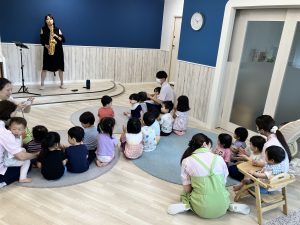 プロのサックス🎷奏者の保護者様がナーサリースクールで演奏会をひらいてくださいました🎵