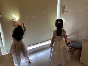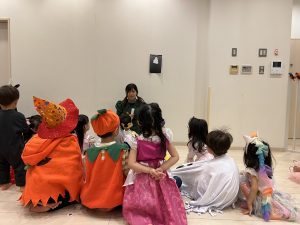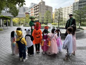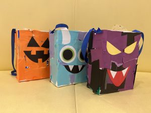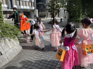 かわいらしい衣装に身を包み、 手作りのハロウィンバッグを持って出発!