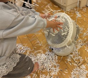 今日はシュレッダー紙を使った雪遊びをしました。 雪をあつめてあつめて~・・