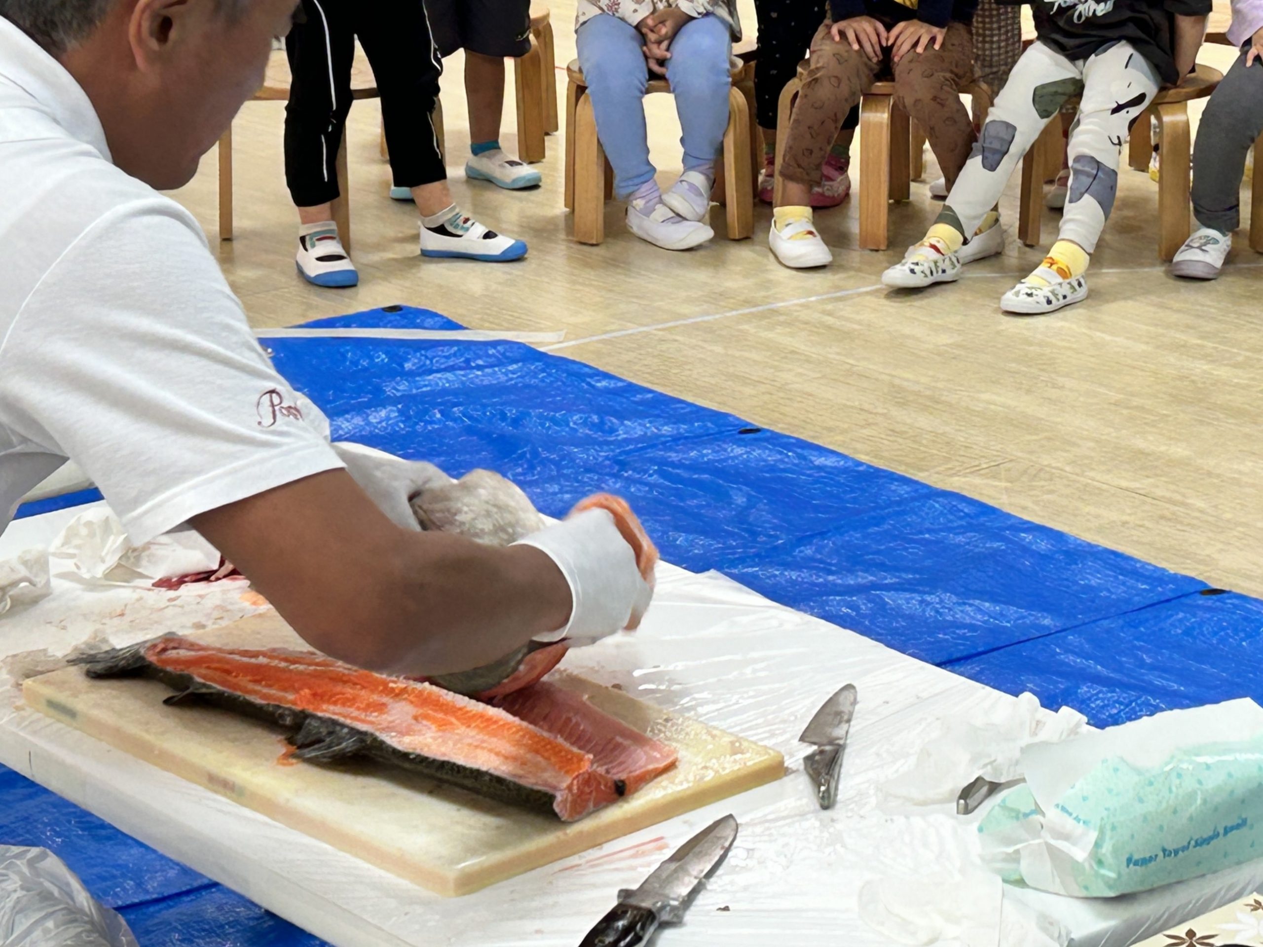 2024.11.19ブログ 食育活動「鮭の三枚おろし」~命をいただく~