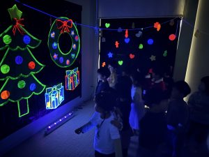 色が発光する不思議さや明るい時と暗い時の色の変化を楽しむため、全クラスで12月にクリスマスイルミネーションを作成しました。