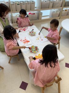 「何色と何色を混ぜたら何色になる」という会話を活動の後もしばらくお子様の口から聞かれました。
