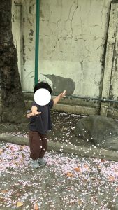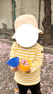 近所の公園へ行き、公園に着くと、桜の花びらがたくさん!