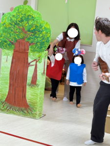 担任保育者も動物になりきって一緒に出ることにしました。