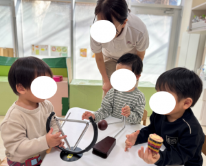 保育者が「これ何かな?」と問いかけると、