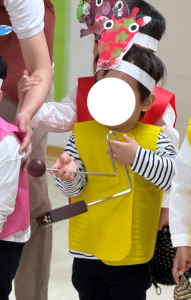 自分たちで考えた役(動物)、多様な楽器を用意し、