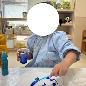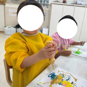 2歳児クラスのお子様からは「よごれちゃうかも……」と、