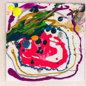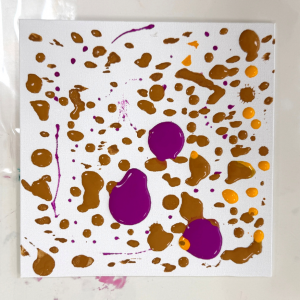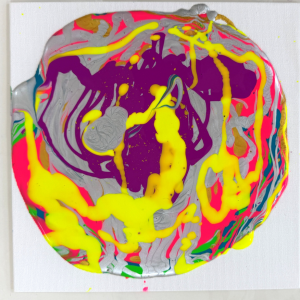キャンバスの上で絵具が混ざり合い、