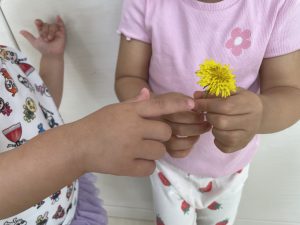 「先生~!みて~!たんぽぽ持ってきたよ!」