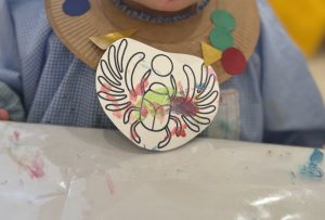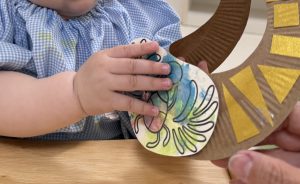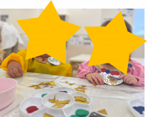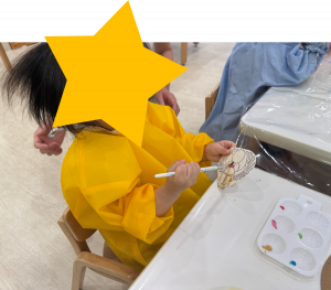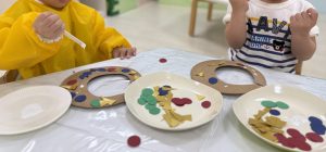0歳児クラスは色付けにタンポを。