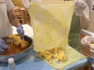 先日、玉ねぎの皮を使って玉ねぎ染め体験を行いました。