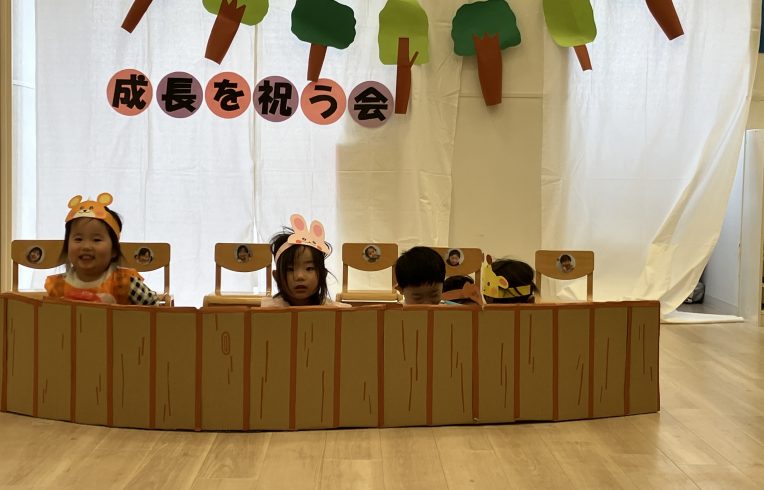 | 年間行事予定 | 5月:こどもの日の会、母の日、保護者懇談会 6月:父の日製作 7月:七夕の会 8月:夏のお楽しみ会 9月:敬老の日のプレゼント製作 10月:ハロウィン 11月:勤労感謝の日 12月:クリスマス会 1月:初詣、伝承遊び 2月:節分の会、成長を祝う会 3月:ひな祭り会2歳児卒園式 |