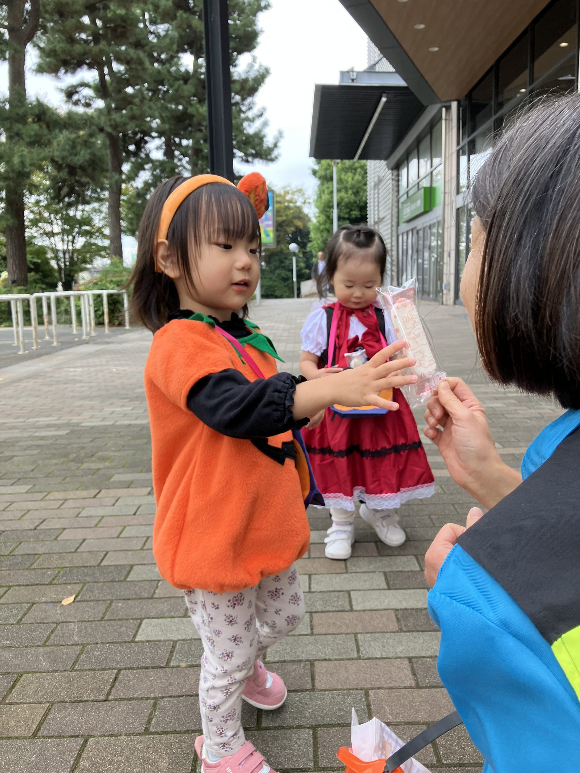 お菓子を受け取った瞬間にはにっこり笑顔になり