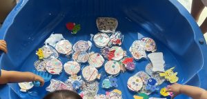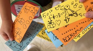 今月の多文化理解教育で学んだスリランカの貨幣「ルピー」のお札は、お子様たち自身が作ったものです。