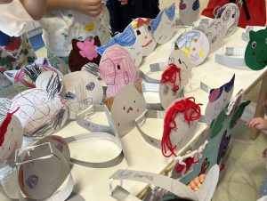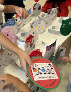 いろいろな素材を利用して、自分だけのおめんを作っていましたよ!