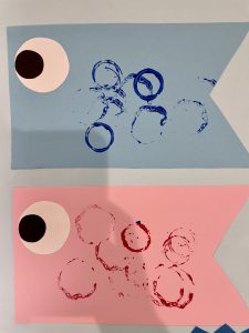 スノードロップは足型と手形でこいのぼりを表現しました。