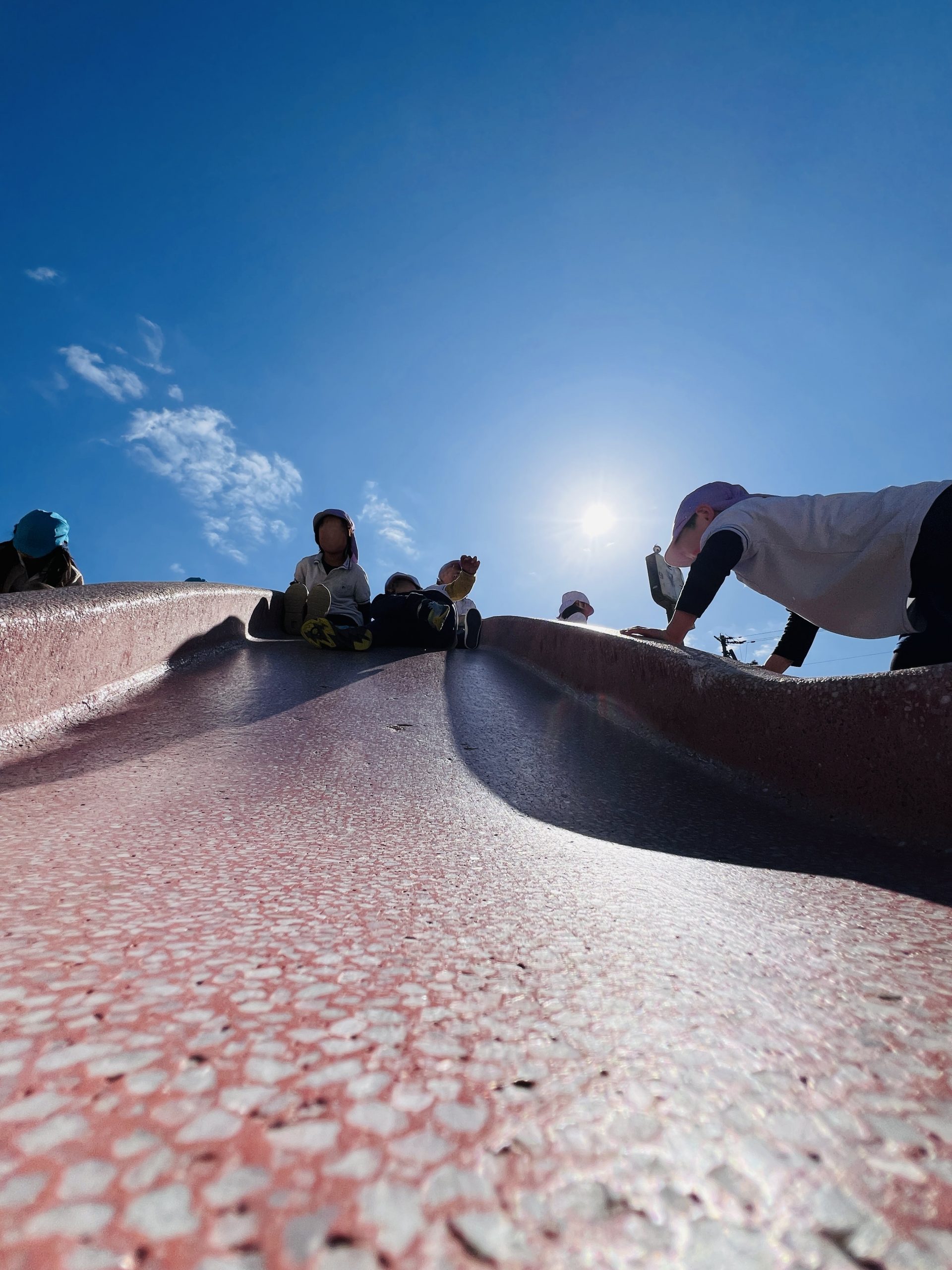 お子様たちは公園で遊びながら