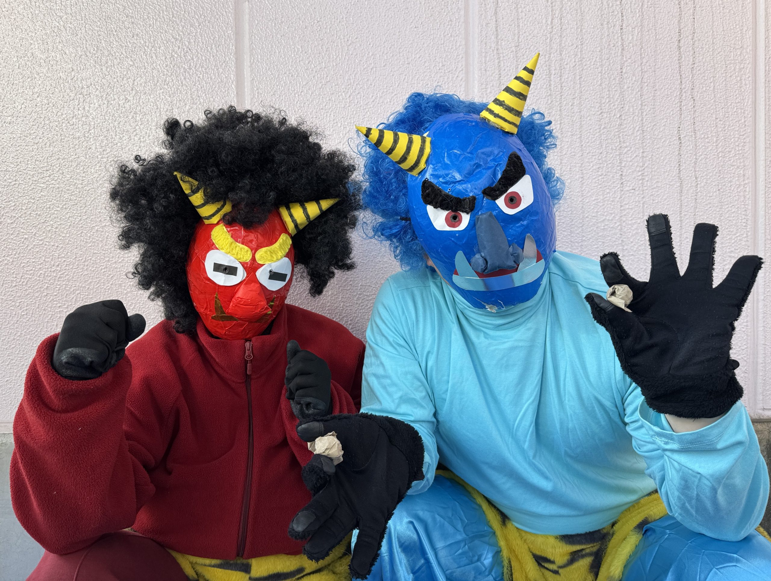 各クラス『豆まき』の練習をしていると鬼が登場!