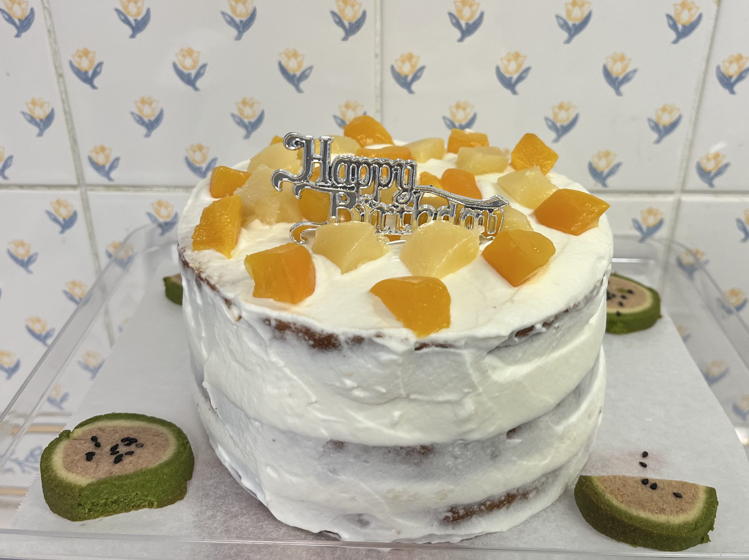 好きな食べ物が「すいか」のお友だち。 『桃のケーキ』にすいかのクッキーを添えて お祝いしました。