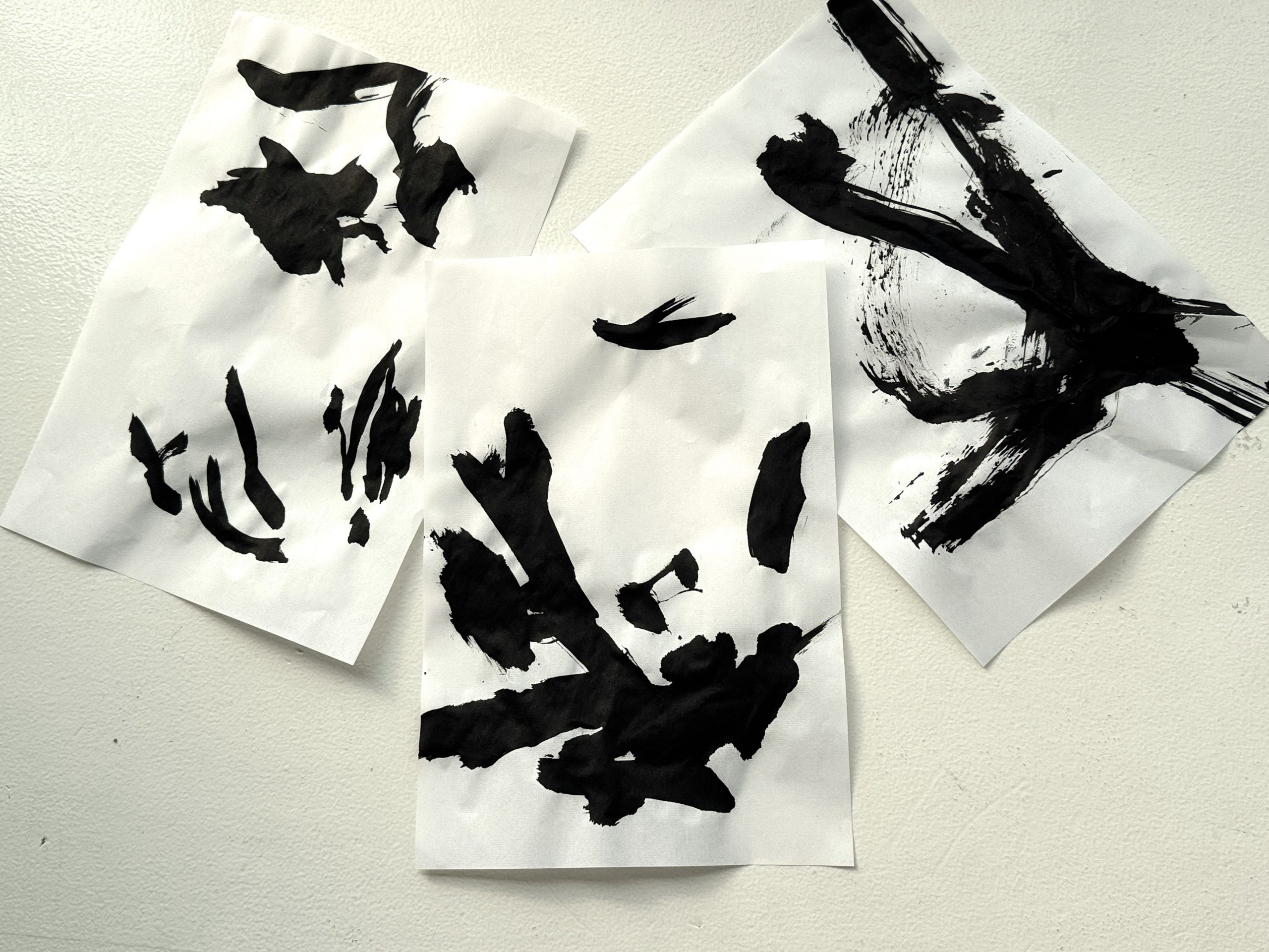 幼児クラスは文字を書きますが 乳児クラスは自由に筆を動かしていました。