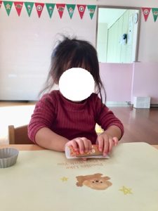 粘土を触れないお子様もいました。