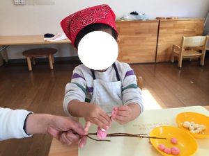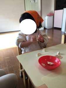 (今回はお餅の代わりに小麦粘土で行いました。)
