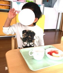 いちごをハートの形にカットしたらとても喜んでくれました。