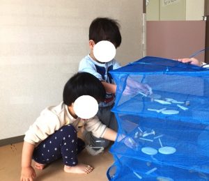 食育活動の1週間ほど前にお子様に干し網に