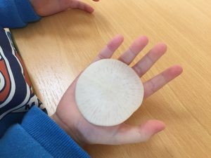2月の食育活動『干した野菜に触れよう』のご紹介です。
