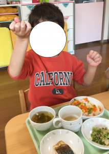 会の後には、ひな祭りらしい献立の給食を食べました。