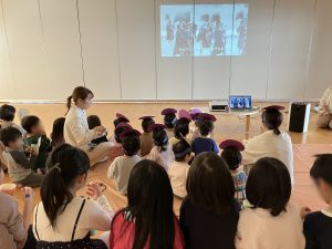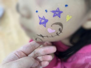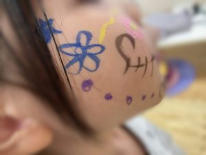 年中・年長クラスは、顔にフェイスペイントを行い、