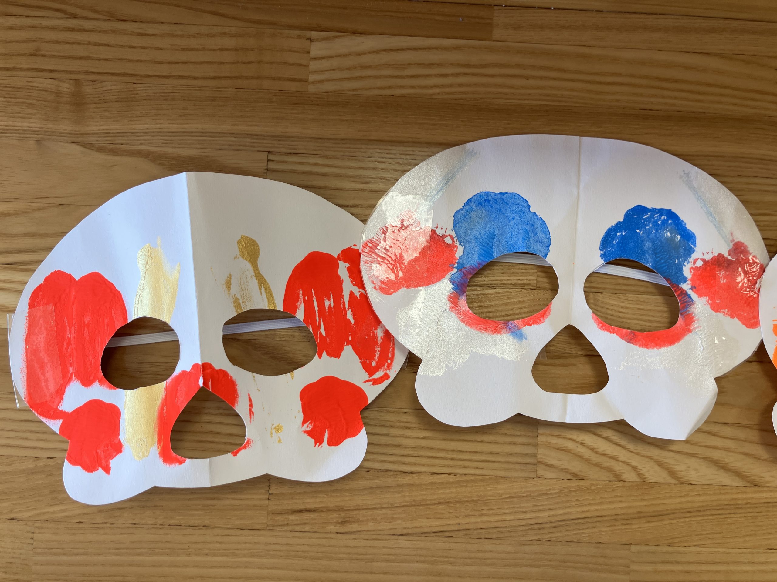 乳児クラス・年少クラスはお面を作りガイコツに変身し、