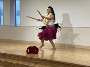先生のダンスを見せていただいたり、 ハワイの楽器「プイリ」を見せていただきました♬