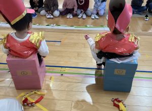 兵隊さんに変身して、音楽に合わせて鈴を鳴らしたり