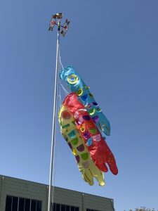 5歳児(りすぐみ)さんは、みんなで一緒に作った巨大こいのぼりを泳がせました🎏