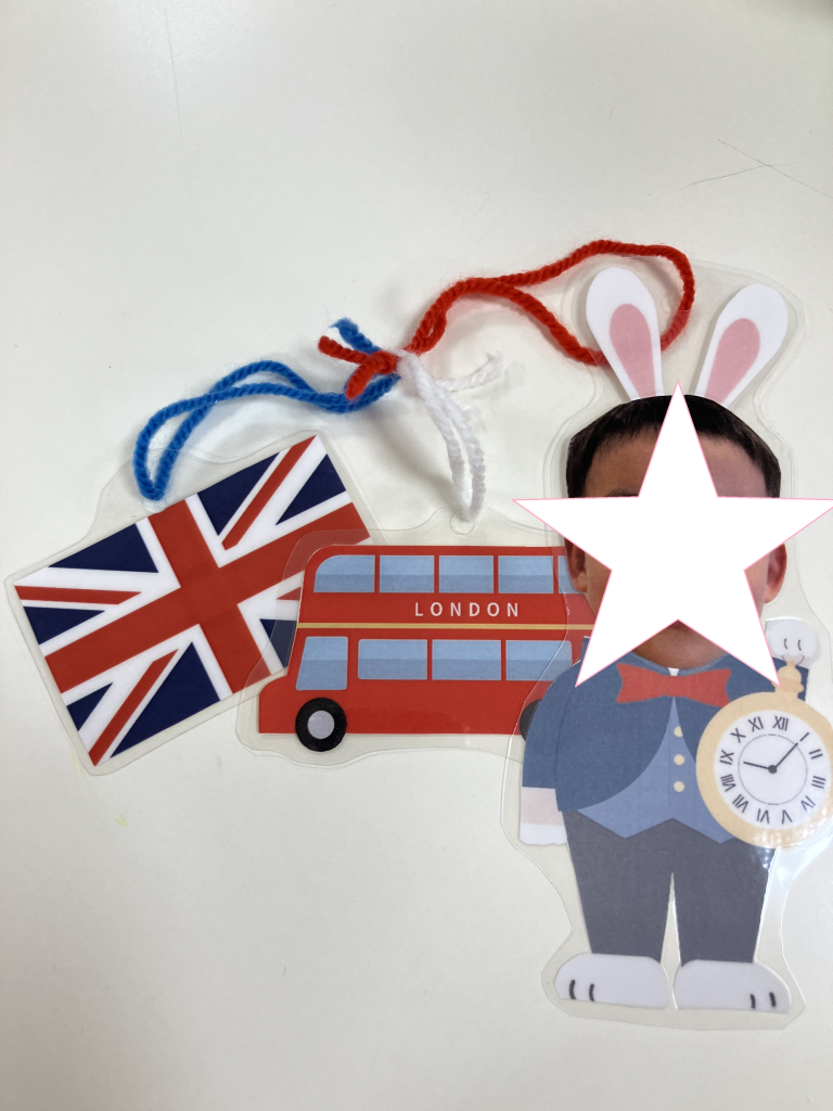 イギリスにちなんだキャラクターに変身したお子様が付いたキーホルダーをもらいました🐰
