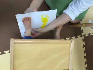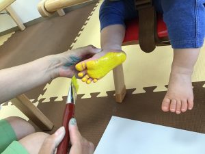 足の裏に絵の具を塗られて