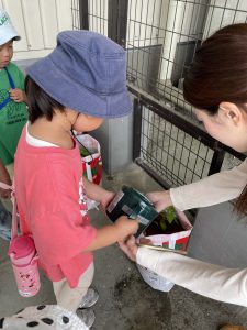 さっそく本日のお当番さんが順番にお水をあげて、今回の活動は終了です。