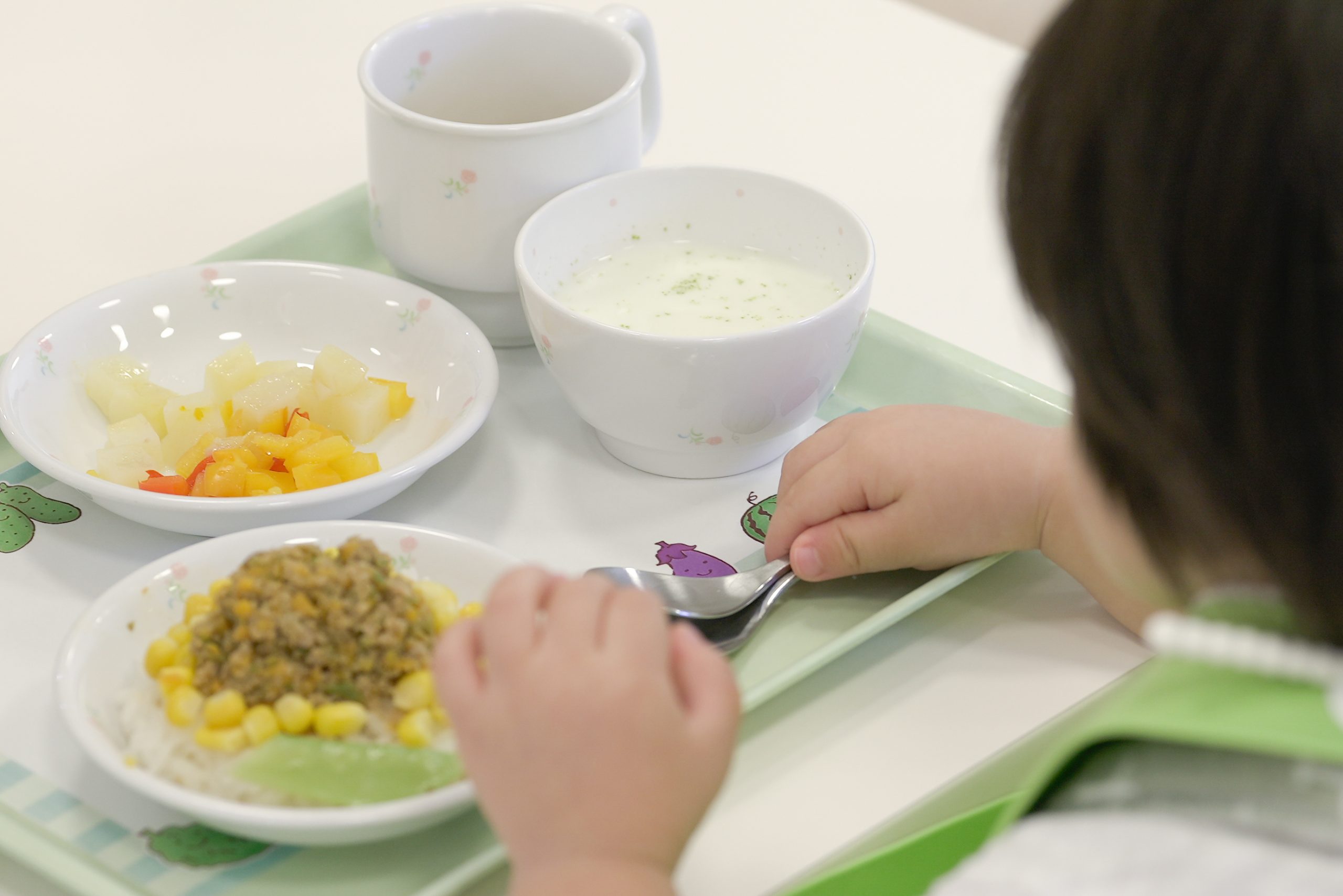 園でのお食事で1日の野菜摂取目標量の半分以上(120g以上)が摂れる