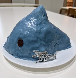 写真は、夏の海をイメージした「イルカ🐬ケーキ」。