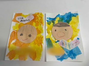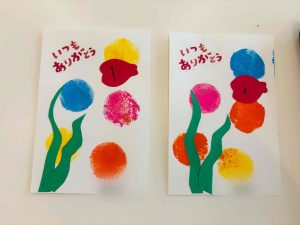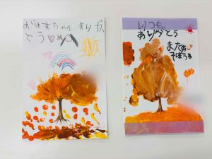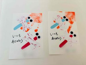 心のこもった手作りのハガキをおじいちゃん、おばあちゃんに