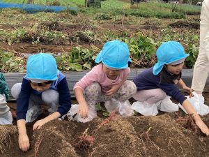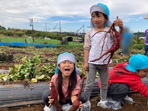 「大きなお芋を掘るぞ~!」と気合いを入れ