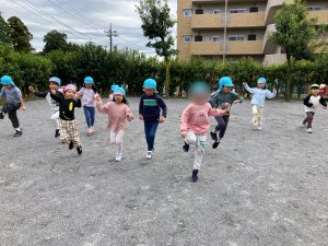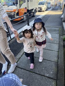 お友だちやスタッフと手を繋いで歩く練習を始めました。