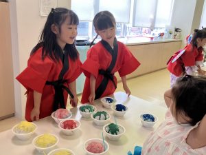2日目、3日目はエーデルワイスクラス(5歳児)のお子様が主体となり、屋台を出してお店屋さんごっこをしました。