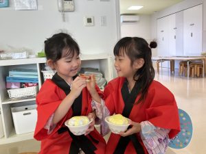 美味しそうにかき氷を食べたり…