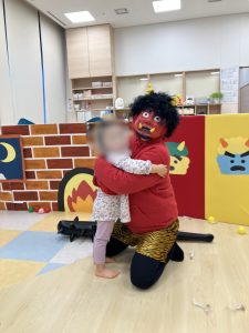 節分会当日、鬼さんたちがゆうてまちに遊びにきてくました。